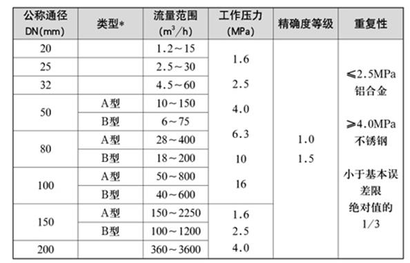 1、流量計規(guī)格、基本參數(shù)和性能指標(biāo)(見表1)