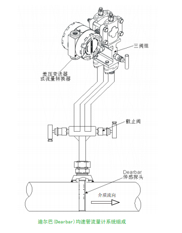 迪爾巴(Dearbar)均速管流量計(jì)系統(tǒng)主要由三部分組成:(見下圖)